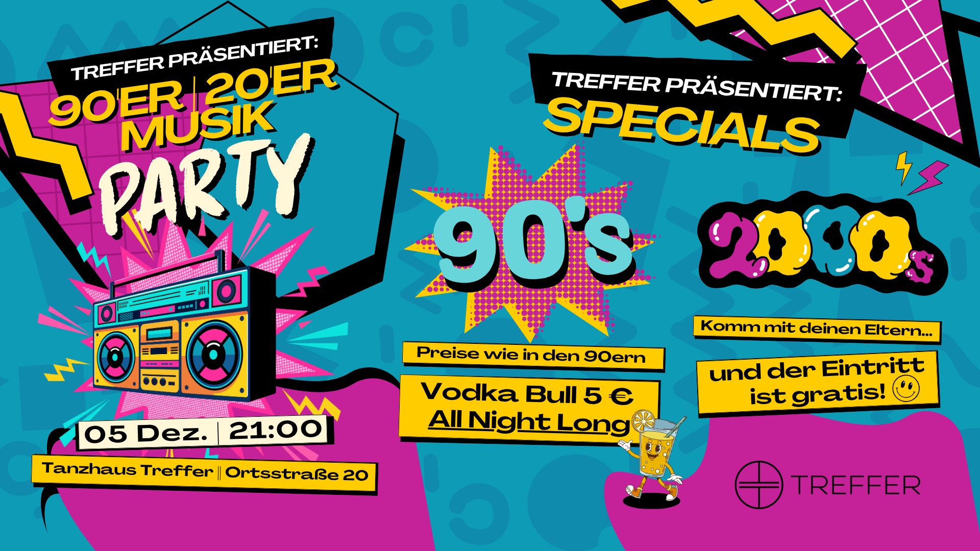 Am 05. Dezember machen wir im Tanzhaus Treffer eine Zeitreise und zwar direkt in die buntesten Jahrzehnte überhaupt! Erwarte Nostalgie, Throwbacks, Hits, die jeder kennt, und eine Nacht, die einfach nur Retro Fever schreit.