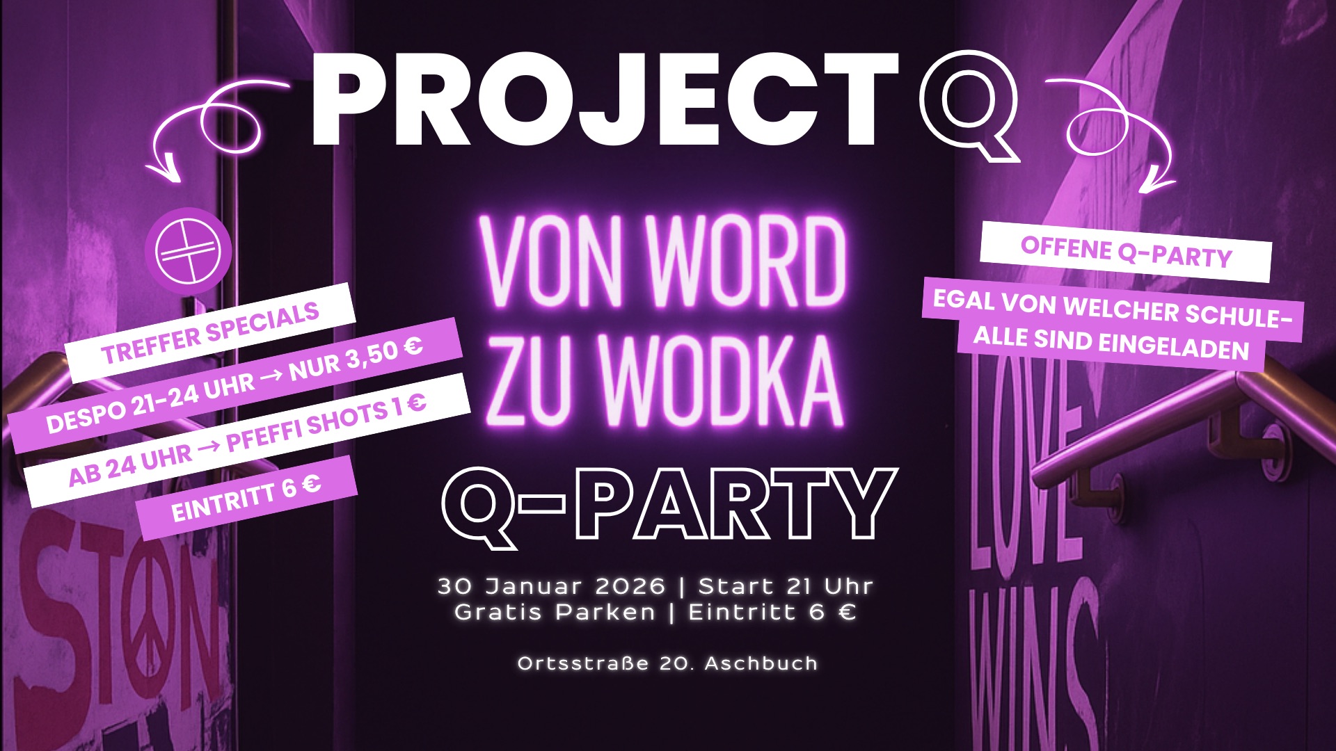 Lernen war gestern – jetzt wird gefeiert! Am 30. Januar 2026 verwandelt sich das Tanzhaus Treffer in die legendärste Q-Party des Jahres! Ob Gymnasium Beilngries oder nicht – alle sind willkommen!